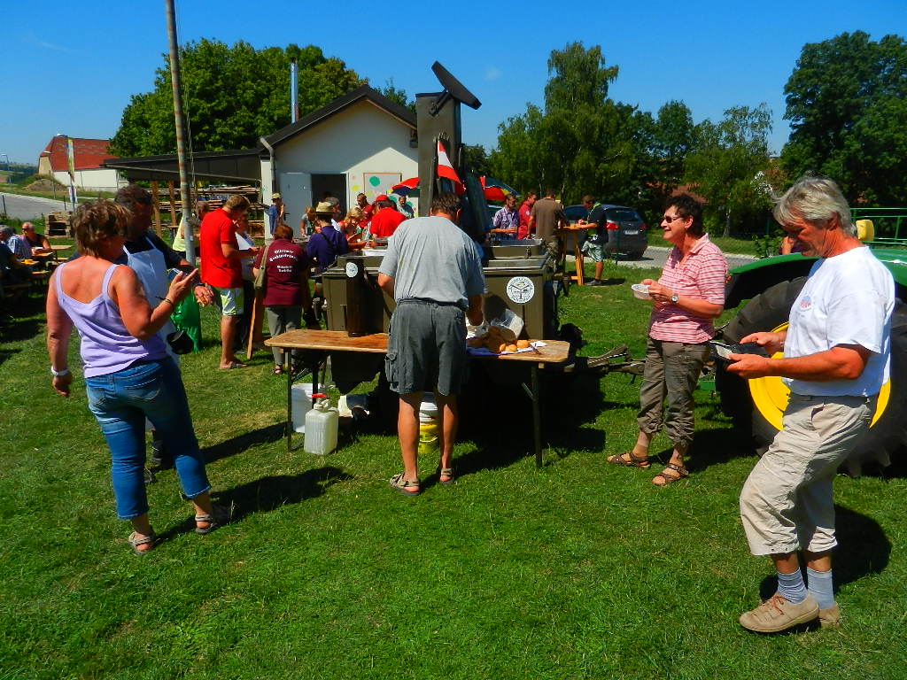 Am Samstag, den 17. August 2013 veranstalteten die "Oldtimerfreunde Bullendorf" eine Ausfahrt nach Asparn/Zaya. Auf der Wiese beim Heim wurde die mitgezogene Gulaschkanone aufgebaut. Während der Zubereitung hatten die Mitreisenden die Gelegenheit, die Landesausstellung zu besuchen. Danach folgte das gemeinsame Mittagessen. Für die kühlen Getränke waren wir zuständig. Es war ein sehr heißer Tag und eine gelungene Veranstaltung. Es wurden 71 Traktoren, sieben Oldie-Autos, sech eispurige Oldies und 270 Oldtimerfans gezählt.
